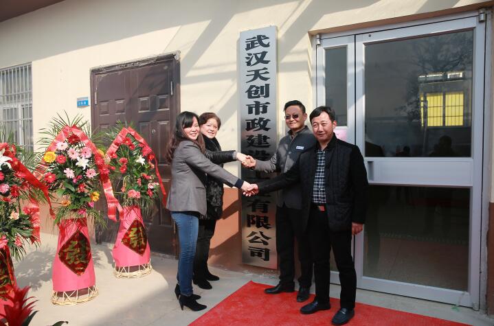 1月23日(农历腊月二十六),武汉天创市政建设工程有限公司告别了钟家村闽东国际城办公区,正式搬迁至四新芳草路新址。汉阳市政建设集团公司党委副书记陈颖、办公室主任黄桂华等领导到场祝贺。