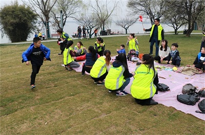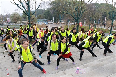 当50余辆造型独特的宽胎“胖胖车”一同骑行在东湖湖畔时,女职工们清脆爽朗的笑声和颜色各异的自行车立即拉成了一道靓丽的风景线。从磨山景区南门出发,骑行队伍沿着环湖的绿道顺势而行,一路领略东湖壮丽风景,在欢声笑语中抵达磨山北门楚城门口。集合合影后,活动人员在草坪上铺开野餐布,分为三个小组开始游戏。不论是经典的“丢手绢”还是紧张刺激的“逢七过”,都让在场的每一个人在参与这样的集体活动时体验到了无穷的乐趣。游戏中接受惩罚的人需要进行才艺展示,武术、合唱以及员工子女带来的舞蹈,甚至是简单的俯卧撑,都惹得众人捧腹连连。随后,职工们根据自己的喜好,兵分两路,乘坐索道缆车或者徒步攀登到达楚天台,观赏了精彩的编钟乐舞表演,俯瞰了东湖胜景。
