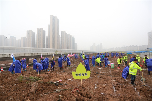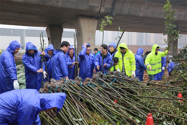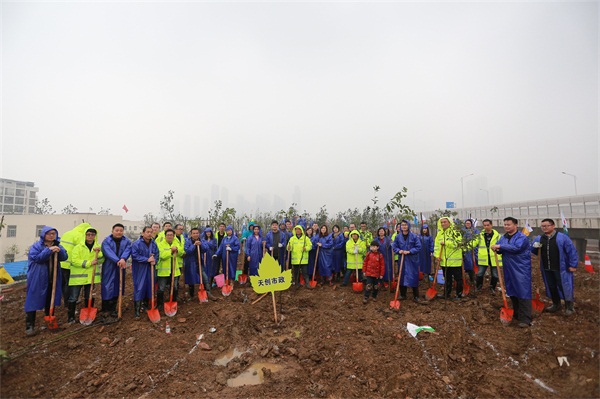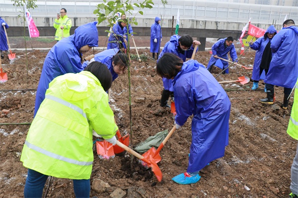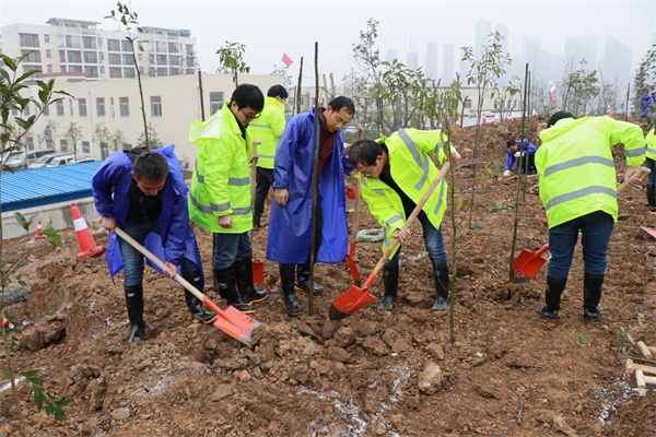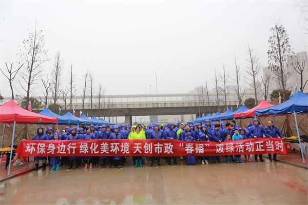 2017年3月12日是我国第39个义务植树节,为履行植树造林义务,美化工作环境,天创公司于12日当天举办了以“环保身边行,绿化美环境”为主题的大型“春播”活动,在公司大院门口两侧土丘上种下了桂树、香樟共计3000余棵。武汉市市政协会、汉阳市政建设集团、天创市政兄弟单位及各职能部门人员、项目经理等共计230余人参与了本次活动。集团公司总经理虞志鹏、党委副书记兼纪委书记陈颖、副总经理刘前进、副总经理兼工会主席邢荣斌及统筹公司董事长王晟,与参与活动的员工们一道,拿起铁锹走上荒坡,种下了象征希望和绿色的小树。