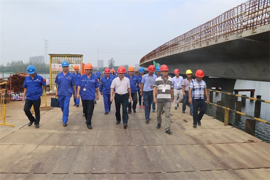 8月9日上午,武船集团董事长杨志钢一行先后前往汉阳市政施工建设的宝丰路硚口路快速化(建设大道~京汉大道)改造工程及墨水湖北路(孟家铺立交~龙阳大道)工程施工现场调研工作,汉阳市政集团公司董事长严悌文、汉阳市政二公司董事长程强、副总经理曹元鑫等人陪同调研。