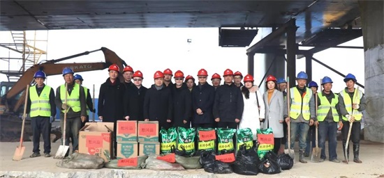 瑞犬报捷去,金猪送春来,2月5日是农历大年初一,上午10时许,汉阳市政集团公司党委书记、董事长严悌文一行来到东西湖区金山大道(九通路~机场路)改扩建工程五环立交施工现场,向节日期间坚守一线的现场管理人员和民工班组送去了亲切的问候,并赠送了大米、食用油、毛巾等慰问品。天创公司支委会书记、董事长、总经理程强、支委会副书记肖三秀、副经理兼工会主席程金雄、金山大道项目负责人刘吉祥等人陪同慰问。