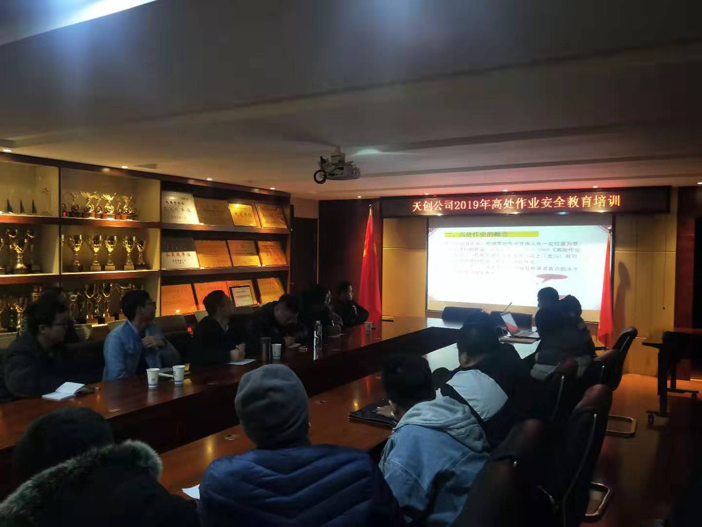 为全面做好安全生产管理工作,切实增强安全管理人员的责任感、使命感和紧迫感,确保各项安全工作落到实处,2019年12月28日下午6时,天创公司在二号会议室组织开展了高处作业培训。