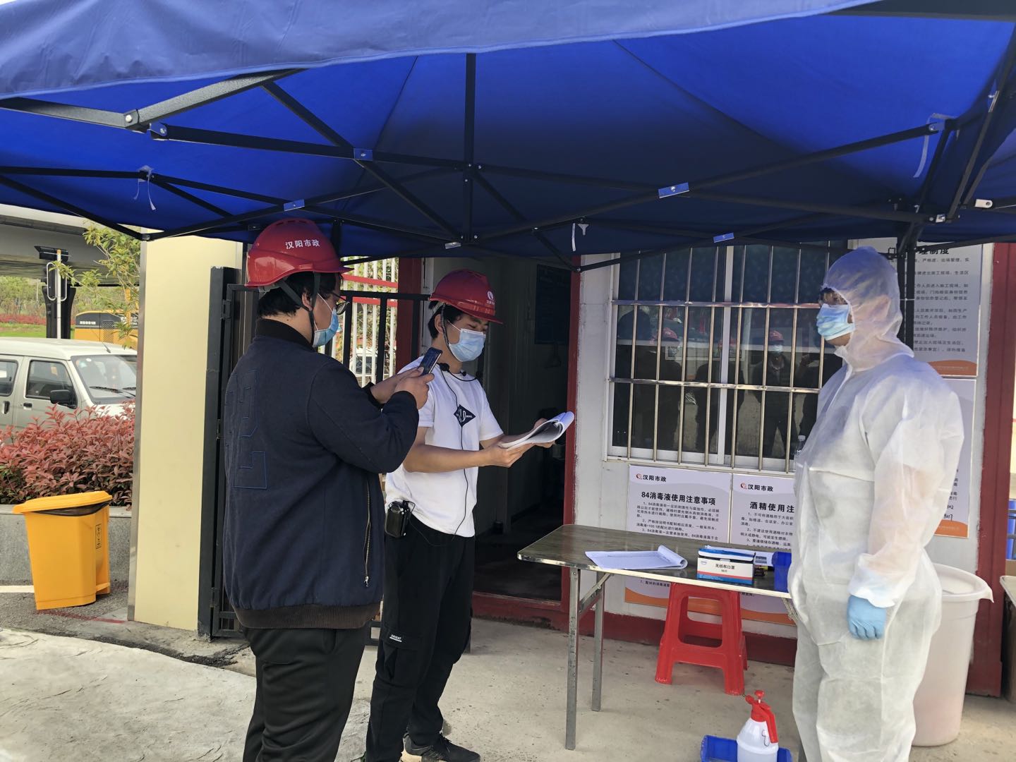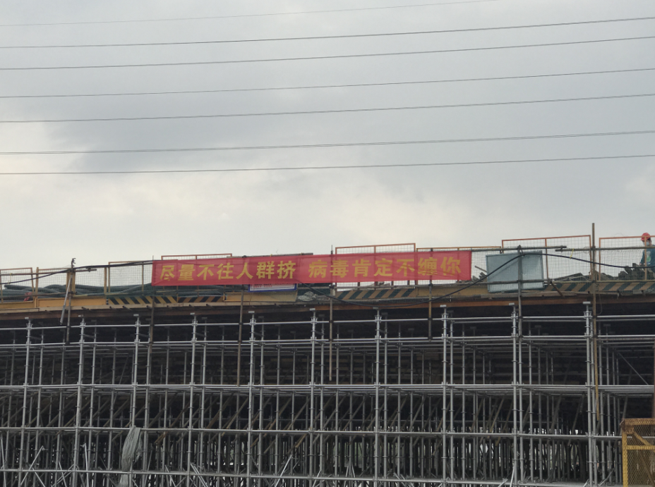 八是严格把控施工作业区。作业区入口设置测温消毒通道,配备专人值守,登记每位进场工人的体温,详细记录外来人员及车辆信息。进入工地的每一名工人都要带上印有编号的袖章,便于了解整个现场施工人员的人数以及每位工人的健康情况等信息。施工现场悬挂横幅,提升大家抗击疫情的意识和信心。增设施工作业面,每个作业面在保证施工安全的前提下安排尽可能少的工人,减少聚集施工人数。