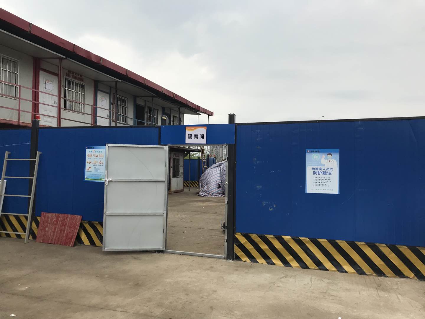 九是管好工人生活区。工人生活区人员比较密集,是项目防疫工作的重中之重。项目部用围挡将工人生活区按班组划分开,购入多个移动卫生间,保证每个区域设有独立的卫生间及洗澡间,每天进行三次以上的集中消毒,避免交叉使用,减少细菌交叉传播的可能性。围挡上张贴宣传标语及防疫漫画,简单生动的科普防疫知识。每个房间对角摆放两张床,并用标识牌写明居住人的姓名,便于管理。工人食堂也进行了全面升级,将厨具换成易清洗的不锈钢厨具、更换新纱窗等,全力保障食品卫生安全。