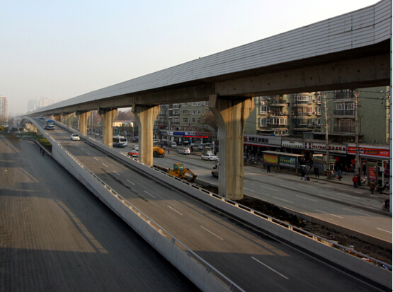 解放大道下延线道路二标段(百步亭路~堤角公园北路)工程位于解放大道堤角公园附近,该工程于2014年1月开工,历时将近两年。该工程施工内容包括道路、排水、桥梁,工程总造价为1.17亿元。其中,道路设计全长2400米,宽60米,为双向10车道。高架桥跨汉黄路与解放大道交叉路口而建,全长475m,宽9.25m。建设期间,该项目在紧抓进度的同时,坚持“不扰民、不添堵”的理念错峰施工,赢得了市民的一致好评。