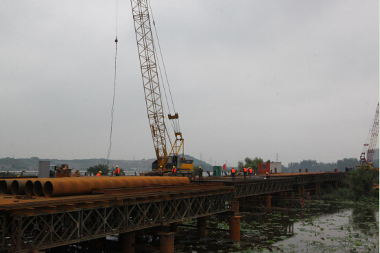 在龙阳湖段钢栈桥施工过程中,该项目部从质量、安全、文明施工及技术等方面牢牢把关,高标准推进工程施工。质量方面,项目部严格落实精细化施工要求,对焊接工艺、桩基贯入度、桩顶高程等进行精准控制,确保工程施工质量。安全方面,项目部以“安全月”系列活动为契机,针对水上作业特点,着重做好防汛备汛工作,并在公司2016年安全生产应急求援演练活动中取得第一名的好成绩。文明施工方面,为响应市建委号召,同时方便周边市民出行,该工程孟家铺段施工便道全部采用钢筋混凝土结构进行施工。技术方面,项目部积极开展重要专项方案及施工组织设计的专家评审工作,并确保项目按设计方案施工。