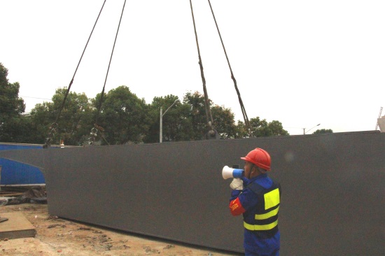 根据军运会配套工程建设的总体节点要求,该项目计划于2019年4月30日完工通车,为确保按时完成工期节点,项目部于2018年6月初便已开始着手进行箱梁钢材选购、见证取样检测、焊接工艺评定、箱梁制作等准备工作,吊装施工方案也先期通过专家组评审。19日上午10时许,历经一个小时的紧张施工,该工程主线桥第五联首节段钢箱梁顺利落位,这标志着桥梁工程建设已经进入了上部结构施工的阶段。