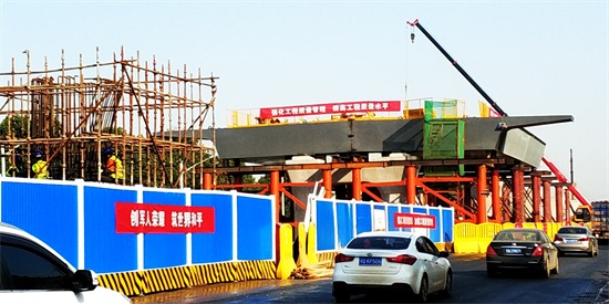 本工程的桥梁上部结构均设计为钢箱梁,共计13联2万余吨钢箱梁,其中沿临空港大道方向主线桥6联,与金山大道互通匝道7联。不论是钢箱梁制作还是吊装焊接,现场施工都面临着巨大压力。为了确保节点工期目标顺利完成,项目部对整个桥梁工程进行WBS任务分解,层层细化,反复优化,并与桥梁下部结构施工统筹谋划、同步部署、同步推进。在公司领导的带领下、各职能部门鼎力支持下,经过精心策划和周密安排,项目部在进行钻孔灌注桩施工时,同步开展钢箱梁施工相关工作,包括各类商务谈判、原材料采购检测、进度计划优化、目标下达、吊装方案专家论证、焊接工艺评定、钢箱梁首节段验收等。目前,整个立交施工现场钻孔灌注桩、承台、墩柱、钢箱梁吊装与焊接等各项工序正热火朝天地进行,既有流水作业也有交叉施工、有条不紊地向既定目标迈进。