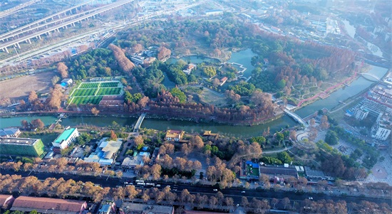 工程对河道周边棚房进行了拆除、清运,渠道沿途新植各类乔木、灌木2750株,移植大型树木519株,栽植坡面绿化20894平方米、设施绿化19900平方米,公园园区内绿化质量显著提升,呈现出一年四季花开不断、人行园中绿意盎然的美丽景象。工程还对原状桥梁进行了拆除,新建四座人行桥,并对园区广场路面进行了更新,行人穿行公园园区更加便捷。