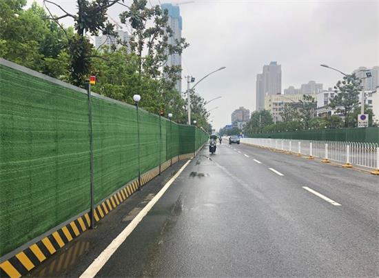 项目工期紧张、多项施工任务交叉推进,对现场的安全文明工作提出了更高要求,项目部始终把安全文明生产理念融入到施工的各个环节。为减轻对市民及出行车辆的影响,机动车道采取全封闭半幅路施工,实行双向通行,并在施工沿途制作交通导向牌,张贴醒目提示标语,积极做好交通导流工作;同时,安排安全文明专班对施工沿线的人行道障碍物进行清理,并在重要路口采取新型可视围档,每天对破损和受污染的围挡及时进行更换和清洗,确保施工沿途围档干净整洁,整齐有序。
