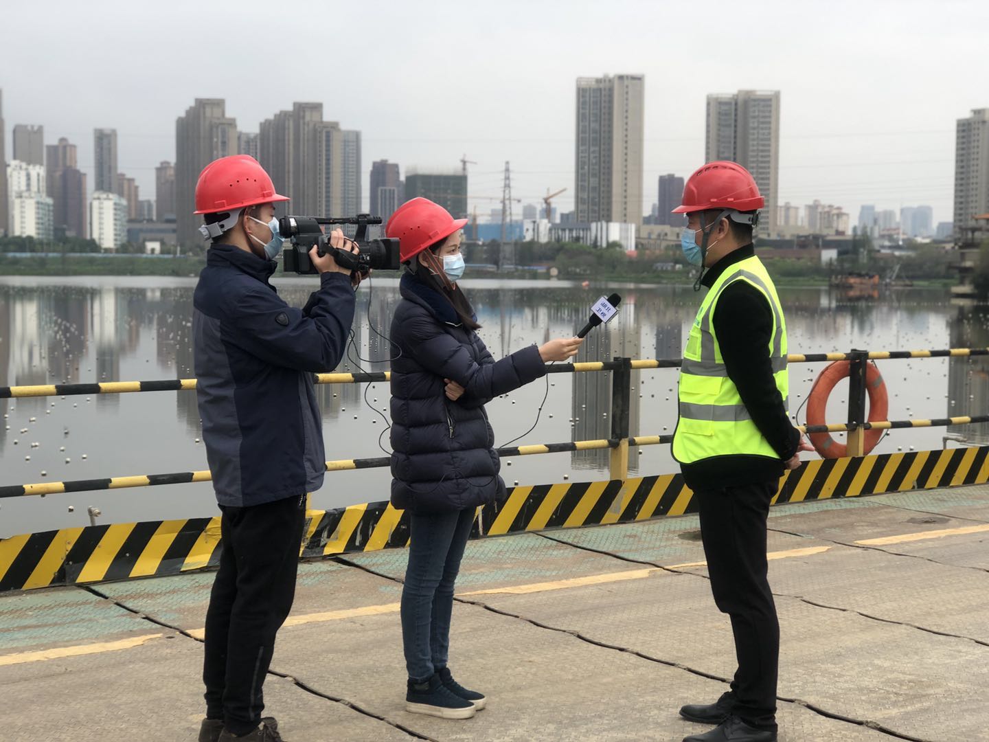 仙女山路项目部复工防疫措施精准全面,管控落实有效。近日,长江日报、武汉电视台、湖北电视台等多家媒体先后前往施工现场进行采访,了解项目复工复产情况。