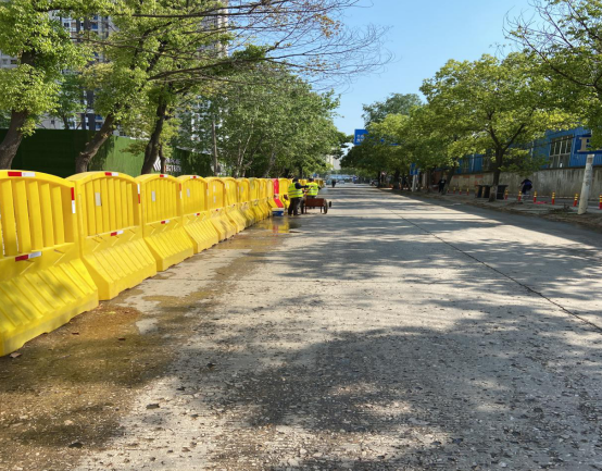 在抢抓进度的同时,三店中路改造项目对现场的安全文明工作也高标准严要求,始终把“安全生产、自觉规范”的安全理念融入到施工现场的各个环节,在沿线水马上张贴交通导向牌及提示标语,每天安排安全文明专班人员对沿线水马进行清理,确保围挡及水马干净整洁,同时采取逐条车道修复、机动车道全封闭半幅路作业等方式施工,尽力减少项目建设对周边居民生活的影响。项目部坚持每天自查,发现问题及时整改,确保施工有序推进。(天创公司 兰月宁 文/图)