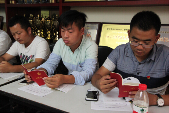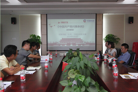 在“集中学习”阶段,党支部书记程强首先以ppt形式,从党的三个伟大历史贡献、历史的经验、历史经验对现实的启迪及习总书记对其他各项事业的要求等4个方面,为全体党员深入解读了习近平总书记在庆祝建党95周年大会上发表的重要讲话——“不忘初心、继续前进”,帮助公司党员进一步领悟了习总书记“七一”讲话的丰富内涵和深刻启迪。党员同志均表示深受启发,依次就自己学习后的感想和思想上的收获进行了发言。随后,全体党员共同学习了《严守组织原则和换届纪律应知应会知识摘编》,进一步明确了换届工作相关纪律要求及行为规范。党规党纪是本次集中学习的重点内容,在学习过程中,程强书记为全体党员逐条逐句解读了《党政领导干部选拔任用工作条例》和《中国共产党问责条例》,使全体党员对以上两个条例的内容有了全面、系统的认识,也增进了对相关党规党纪的理解。在随后的学习讨论环节,全体党员首先围绕《习近平关于严明党的纪律和规矩论述摘编》、《晚明大变局》、《树的秘密生活》、《世界大格局 中国有态度》、《大城崛起》等5本书,以“对照党规党纪,看遵规守纪严不严”为主题,互相分享和交流了各自对于遵规守纪、做合格党员的心得和体会。紧接着,全体党员围绕《长江日报》7月12日第一版《让“党员常青”在我市蔚然成风》专题报道,以“党员常青”为主题进行了深入细致的讨论。党员同志纷纷结合实际经历,就如何做到“忠诚一辈子、奉献一辈子”谈了自身想法,并决心在今后的工作中更加严格要求自己,及时给思想除尘,时时处处践行“党员常青”,永葆共产党员的先进性和纯洁性。