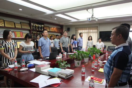 在活动第一个阶段“集中学习”正式开始前,全体党员集中向党支部缴纳了8月份党费,并就2008年4月至今交纳党费情况进行了自查,认真填写了《交纳党费情况自查表》。随后,党支部书记程强宣读了《关于公示2015年度中央组织部代中央管理党费、省委组织部代省委管理党费和市委组织部代市委管理党费收支情况的通知》,并带领全体党员齐声高唱国歌,重温入党誓词,诵读党章第四章《党的地方组织》。
