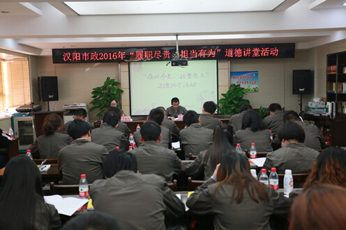 11月3日下午,武汉天创市政党支部结合道德讲堂,在闽东国际城3A栋26楼会议室召开了以“履职尽责、担当有为”为主题的支部主题党日活动,党支部及兄弟公司同仁共计50人参加了此次活动。