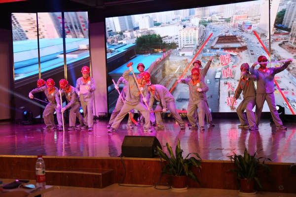 该情景剧由发生在公司项目建设中的真实故事改编,讲述了职工李程在担任宝丰路硚口路快速化(建设大道-京汉大道)改造工程项目经理期间,为保证工期,把家搬至项目一线的感人事迹,充分体现了汉阳市政人的担当精神和奉献意识。舞台下,观看演出的汉阳市政人无不为发生在身边人身上的身边事深受感动和鼓舞。