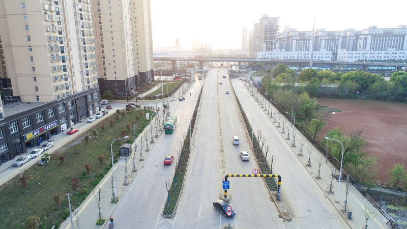百威路(翠堤路~金花路)道路排水工程西起金花路,东至翠堤路,横跨三环线,工程全长901.62m。道路段实施长度为670.46m,红线宽度50m。跨三环线桥梁全长284.08m,桥宽17m~22m,为双向4车道,车行道宽15m。桥梁上部结构为桥面连续结构简支空心板梁,桥台为一字型桥台,钻孔灌注桩基础,桥墩为多圆柱加盖板梁式墩,桥墩与桩基之间采用承台连接,承台横向间设系梁。另外,依附百威桥在三环线两侧修建四座“L型”单箱双室钢结构人行天桥,全长80.66m,桥面宽2.8m。