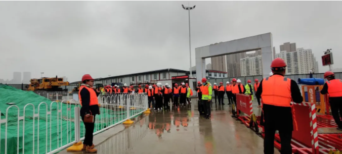 在现场观摩环节,参会人员参观了径河五路项目现场安全文明标准化的落实情况,并就管理过程中的细节进行探讨,为后续改进质量安全管理工作交流经验。