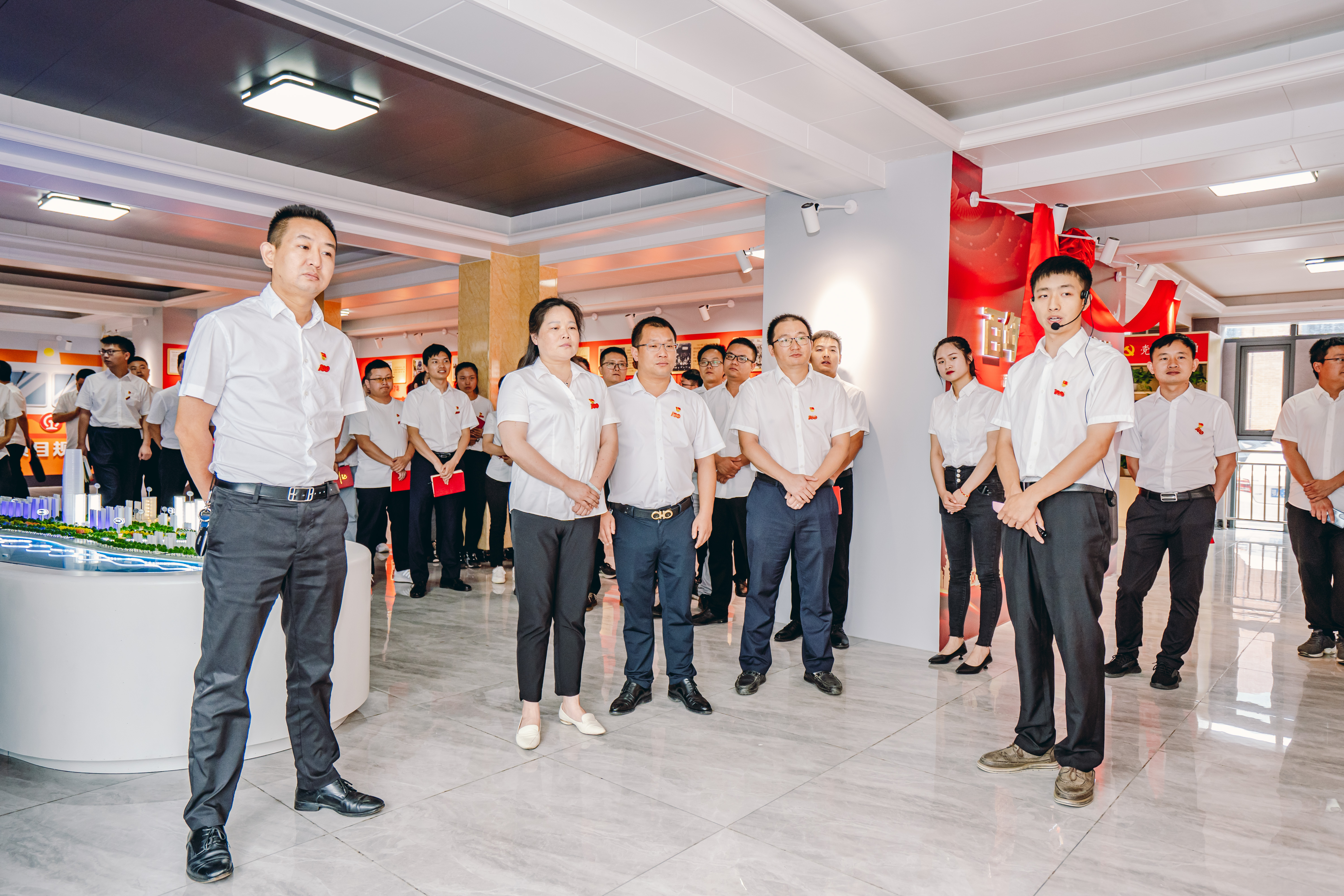 学习百年党史,传承红色基因。6月26日上午,汉阳市政二公司、天创公司支委会在长江之畔武昌生态文化长廊项目部开展“百年党史·红色传承”主题党课活动。公司50余名党员参观武昌生态文化长廊项目党员教育服务中心,并聆听主题党课。