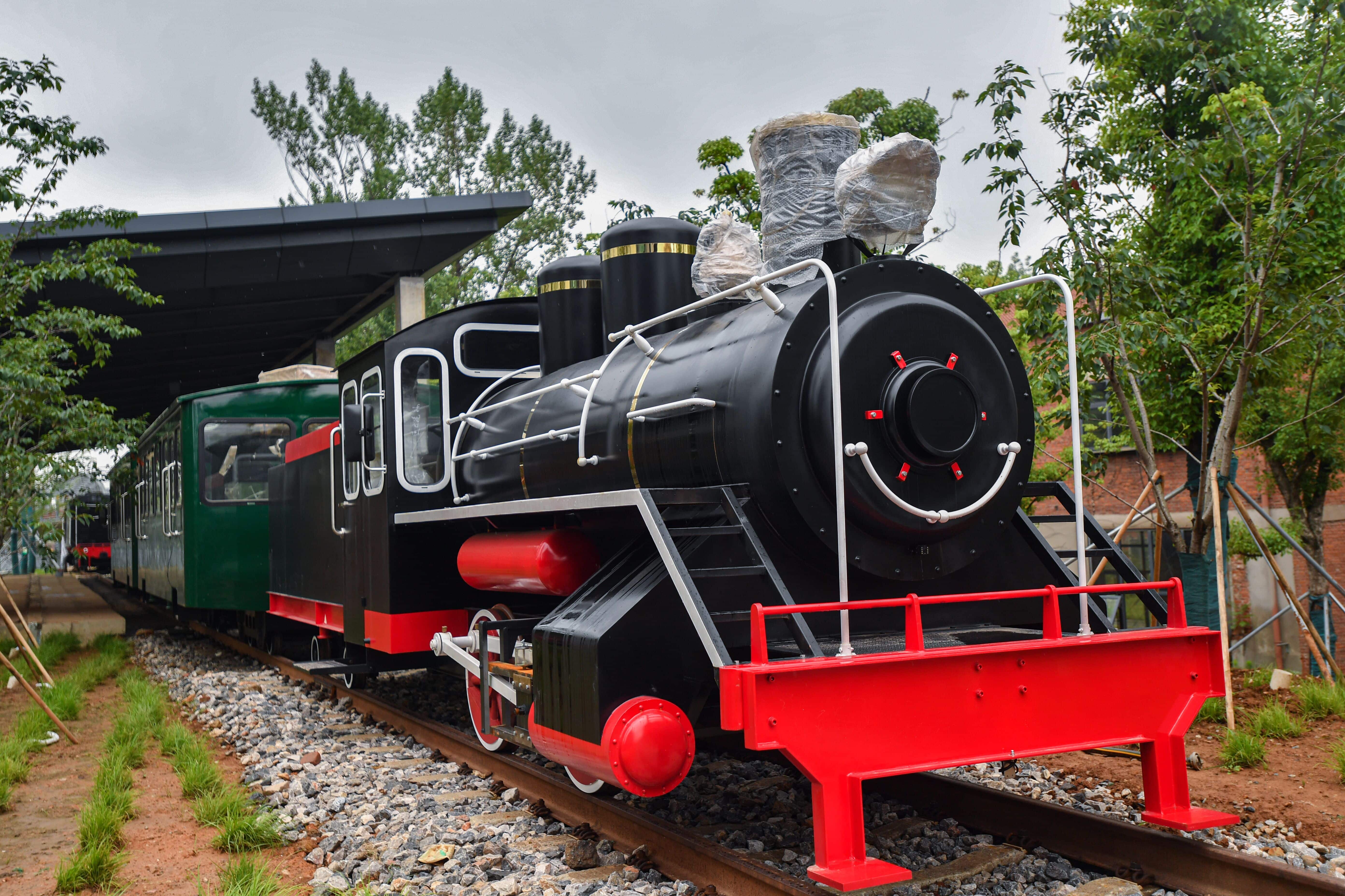 该列小火车主要用于观光旅游,起止点分别是青山沿港路和建设十路,长约1公里。一个黑色的蒸汽车头,静静地停放在轨道上,火车头后面跟着绿皮车厢,仿佛让人回到了上个世纪。
