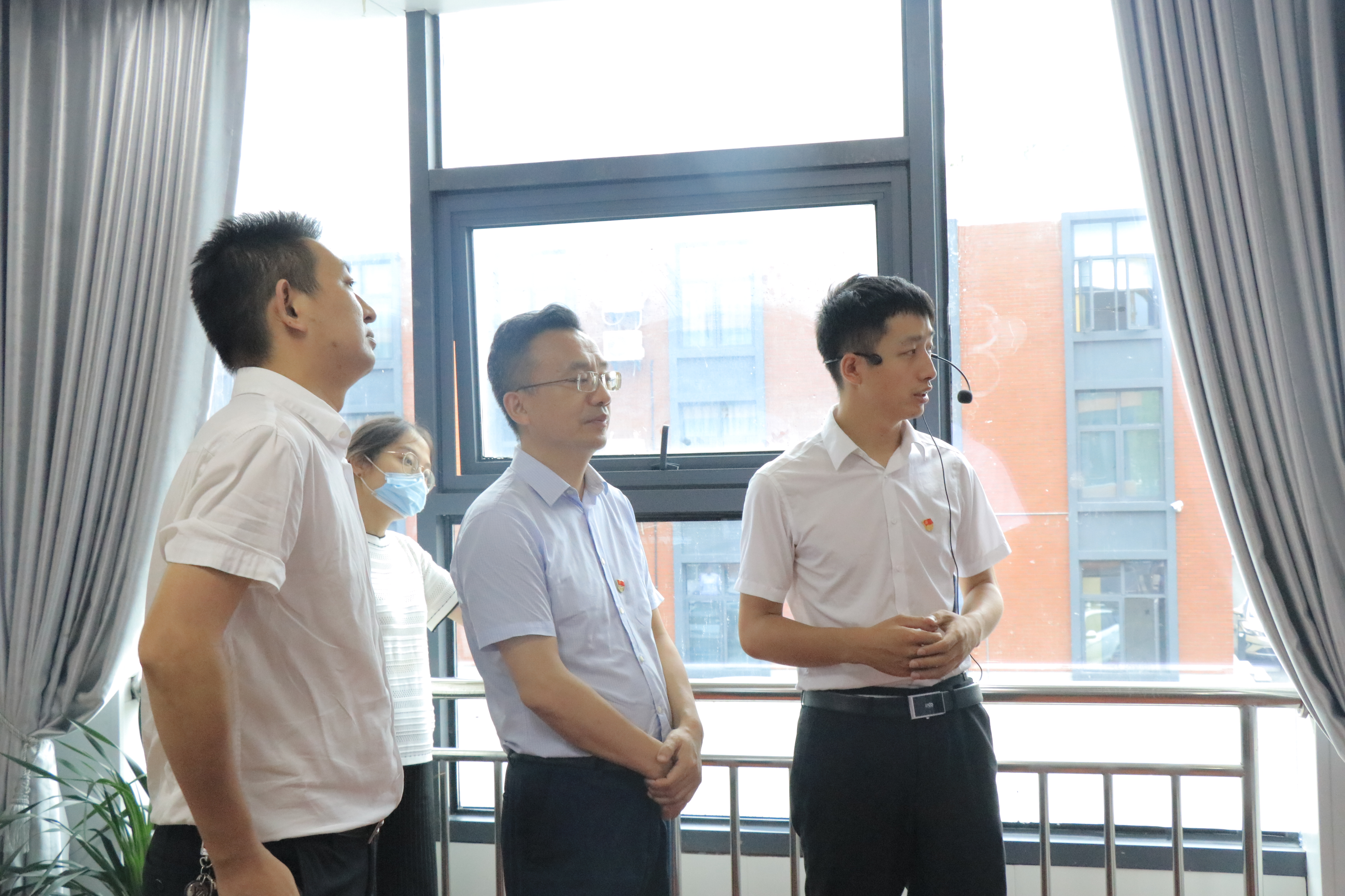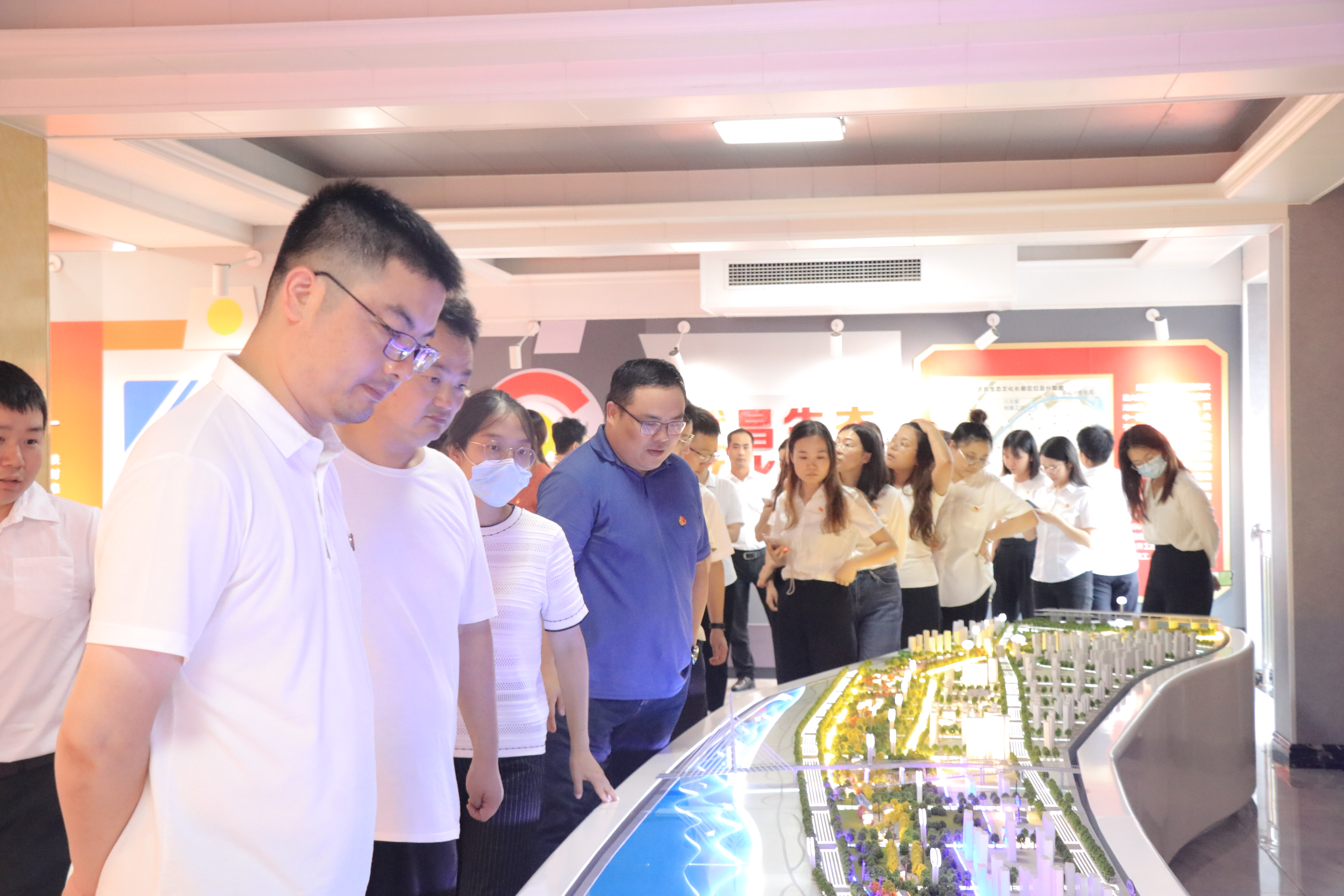 活动中,四位党员代表结合学习内容,工作实际分享心得体会。与会人员观摩了长廊党员教育服务中心和罗明飞工匠创新工作室,实地探访了四美塘施工现场。
