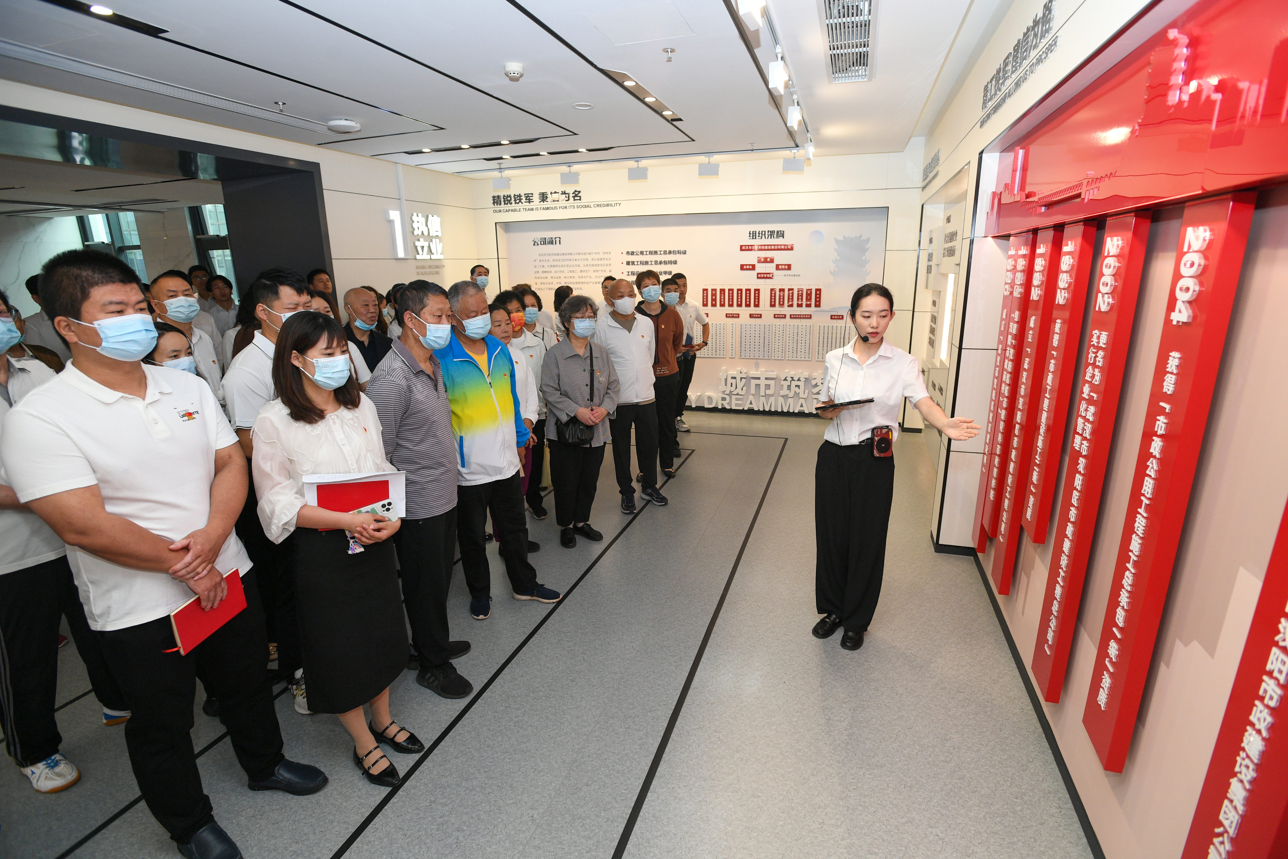 党员们走进汉阳市政企业文化展厅,参观了执信立业、奋进兴业、笃行精业9个展厅,深入了解了汉阳市政近70年来一路高歌奋进的奋斗景象。党员通过现场观看宣传片、观摩立体项目模型、实地互动交互式投影,聆听讲解和介绍,追忆汉阳市政发展的峥嵘岁月,赞叹汉阳市政人凝心聚力取得的辉煌成就。