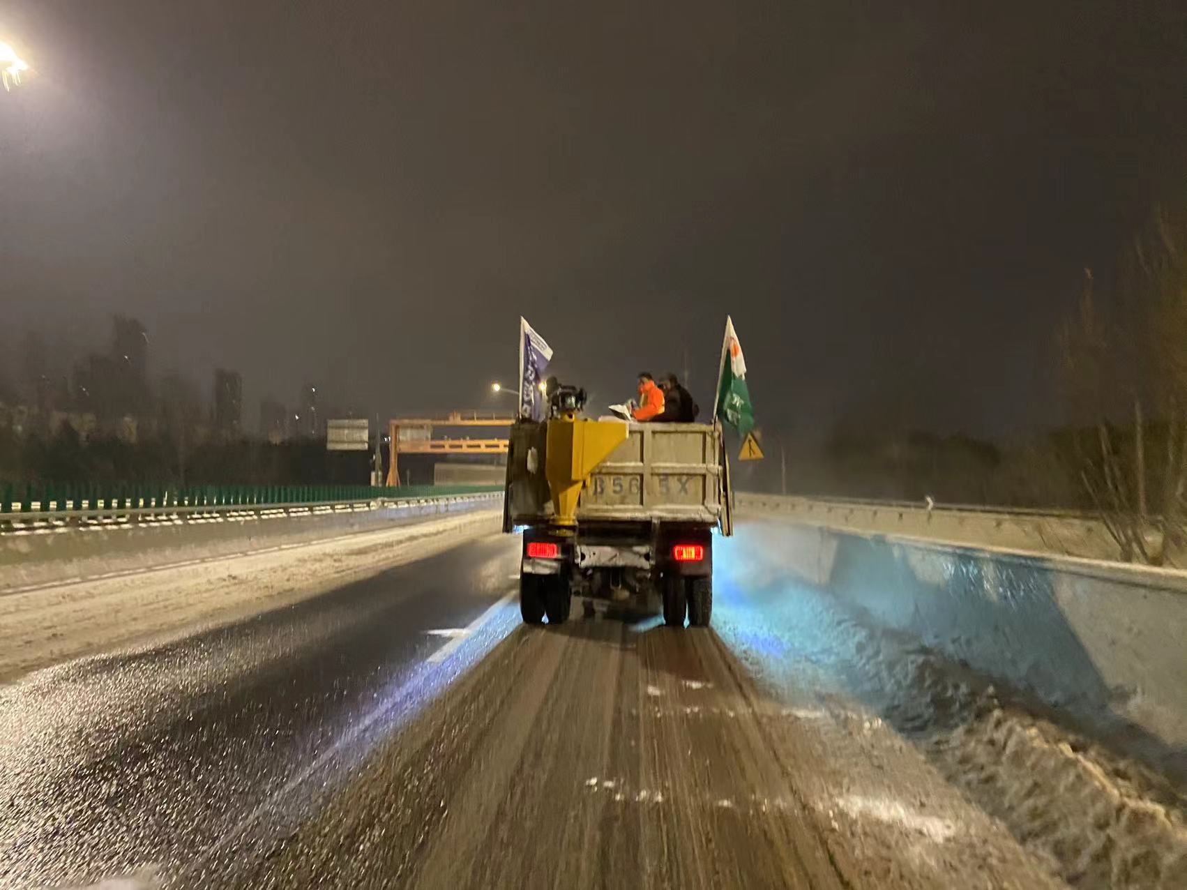 以雪为令,截至22日上午,文化长廊项目部共出动应急人员19人,撒布机3台,铲车2台,撒布融雪剂15吨,保障洪山区白沙洲武金提立交桥到庙山立交桥(13km)道路通畅。