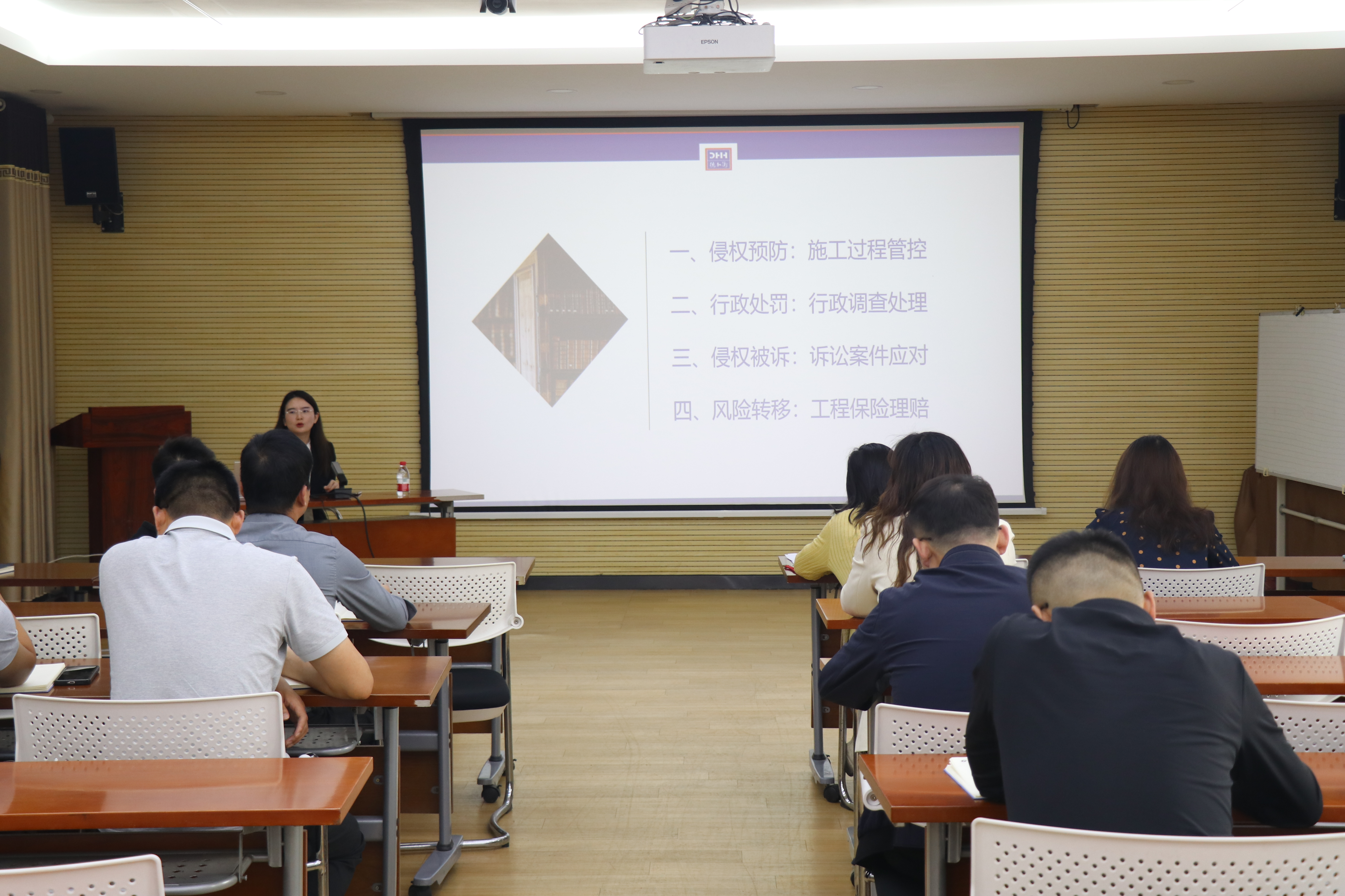 本次培训主要内容包括施工过程管控、行政调查处理、诉讼案件应对、工程保险理赔等四个方面。